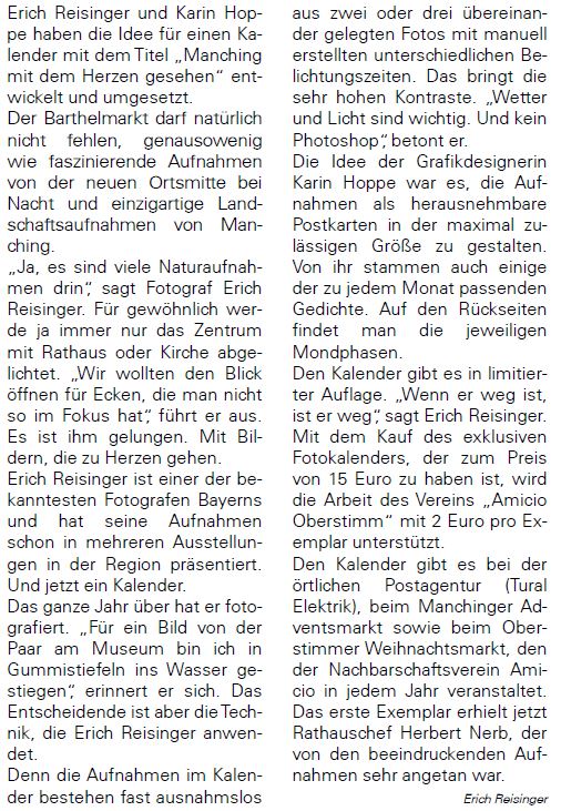 Manchinger Fotokalender – 2 EUR pro Kalender gehen an AmiciO Oberstimm
