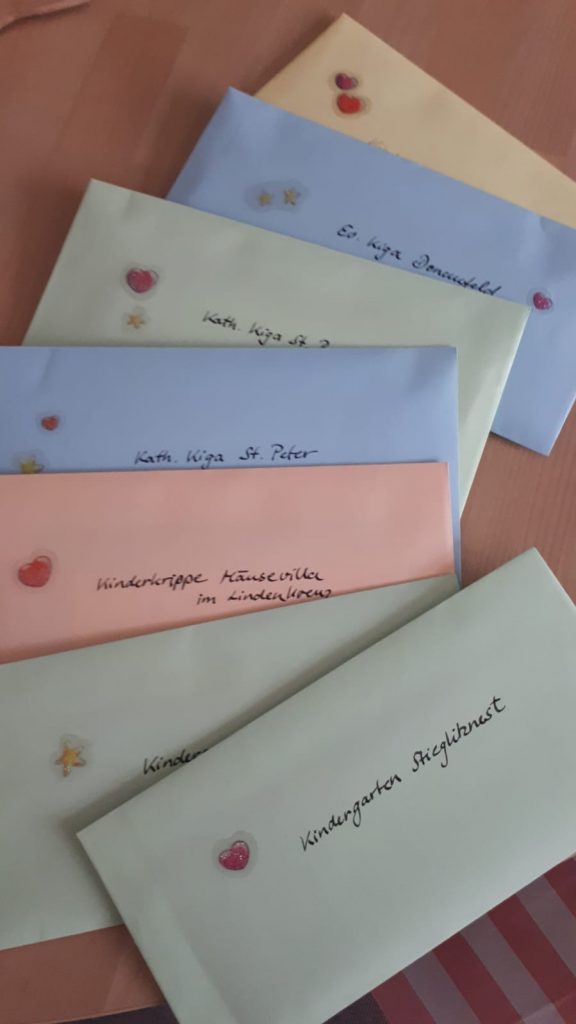 … ist in jedem dieser Umschläge. Jeder Kindergarten im Markt Manching bekam von AmiciO einen dieser Büchergutscheine geschenkt.