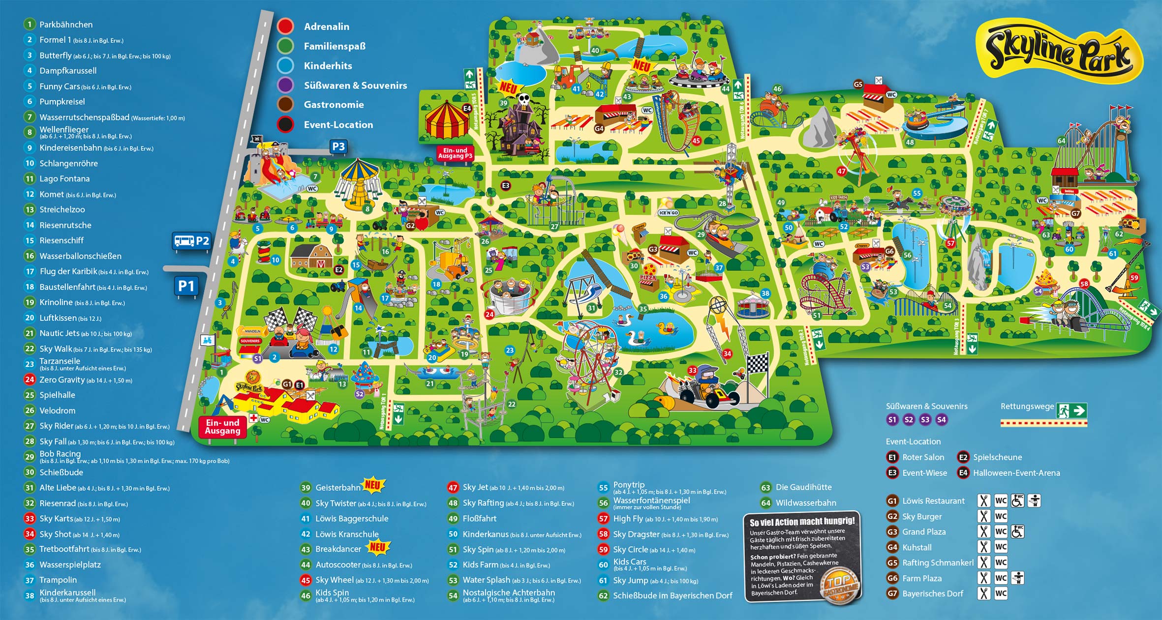 Wer schon mal schauen will, was im Park alles geboten ist, kann dies unter www.skylinepark.de tun. Klickt einfach unten auf das Bild mit dem Parkplan und Ihr seht,