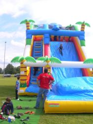 Die Kinder vergnügten sich auf der eigens aufgebauten Riesenrutsche oder drehten auf dem Bikepark zu lauten Rythmen ihre Runden.