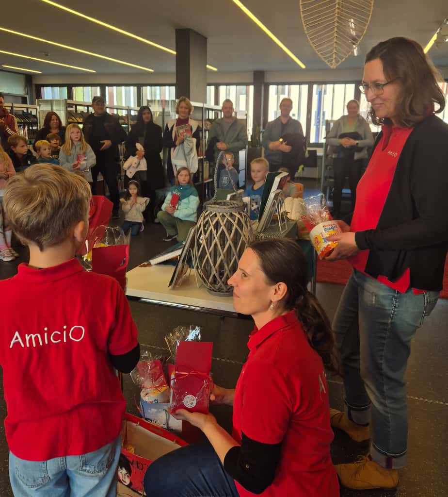 … und hier noch zwei Bilder von der Preisverleihung des Ferienpasses 2025 in der Bibliothek Manching. Unter allen Teilnehmern des Ferienpasses 2025, die Ihre abgestempelte Karte abgegeben hatten, wurden zahlreiche Sachpreise verlost. Diese wurden auch diese Jahr wieder von AmiciO gesponsert.